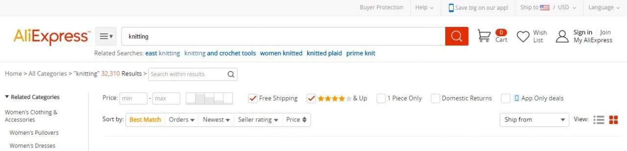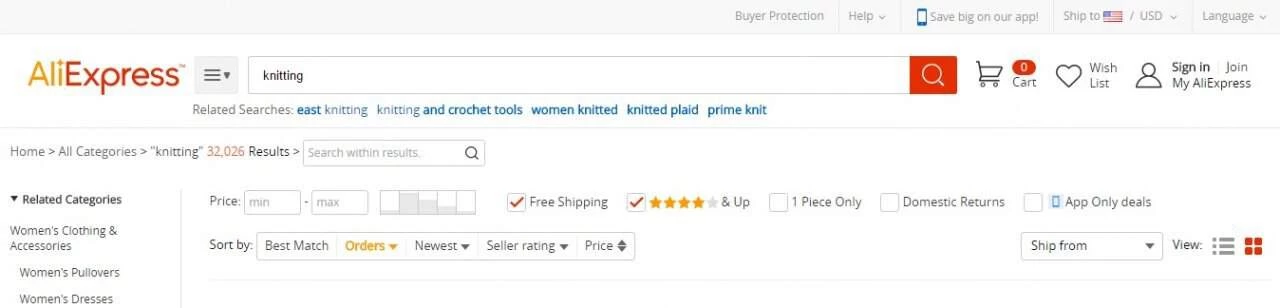 • ปริมาณผลิตภัณฑ์ AliExpress เราดูจำนวนรายการที่สามารถพบได้บนแพลตฟอร์มนี้เมื่อใช้คำหลักเฉพาะ (เรารวมเฉพาะรายการที่มีตัวเลือกการจัดส่งฟรีและการจัดอันดับ 4 * +)